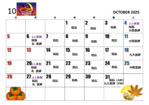 10/11,10/18、10/25、10/31午後は院長不在となります。