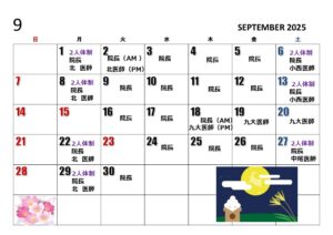 9/2午後・9/18午後~9/20は院長不在となります。